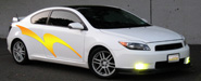 Match Graphic Stripes to your ride. From flame graphics, checkered racing decals, tribal art designs, lightning bolt stripes, freehand splash effects, to your simple flemish pinstripe, we design it all. With 1,000's of templates from our digital auto library, we can draw your graphic to scale. Our striping is not some "off the shelf stock item". These stripes and graphics are designed to fit your car. Let us impress you with what we can do to your car, truck, or SUV.